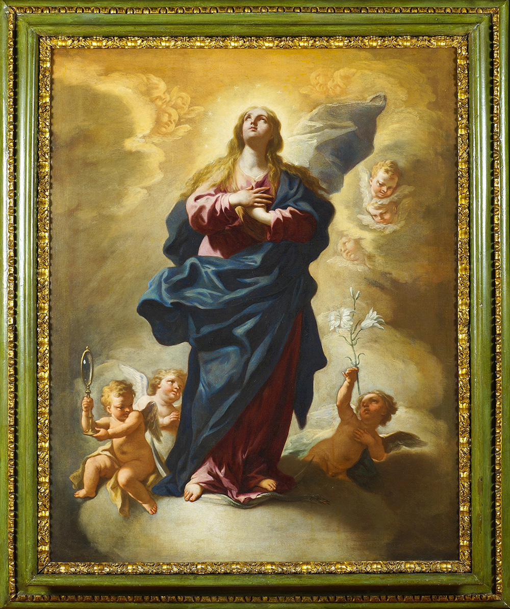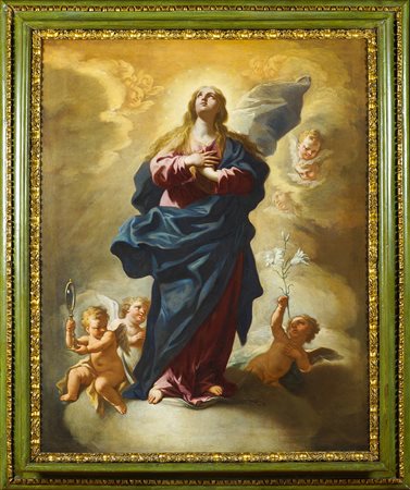 Domenico Mondo, attribuito a Capodrise 1717 - Napoli 1806 132x104 cm. "Immacolata concezione", olio su tela, entro cornice coeva