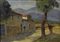 Carlo Domenici (Livorno, 1898 - 1981) CASE E FIGURE Olio su compensato, cm. 35x50 Firma in basso a destra.