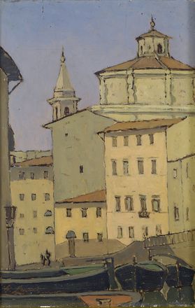 Giovanni Lomi (Livorno, 1889 - 1969) VECCHIA VENEZIA Olio su tavoletta, cm. 30,5x21,5 Firma in basso a sinistra. Sul verso dichiarazione di autenticità di Massimo Lomi.