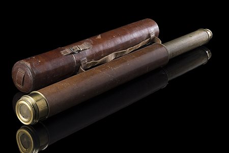 Cannocchiale telescopico in ottone rivestito in cuoio marcato "Frith London"...