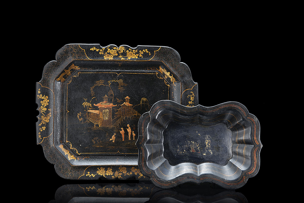 Lotto composto da due vassoi in lacca decorata a chinoiserie. Sec. XIX...