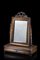 Psiche da tavolo con specchio basculante decorata da cimasa intagliata e...