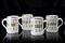 Quattro tazzine cilindriche da caffË in vetro lattimo con manici a ricciolo....