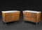 Coppia di comÚ lastronati in ciliegio a due cassetti e mezzo con montanti a...