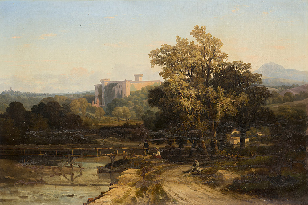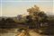 Charles Lefevre (Francia, sec. XIX) "Castello di Spezzano" e "Villa Saliceto" coppia di dipinti ad olio su tela (cm 60x94) In cornici coeve in legno intagliato e dorato con etichetta del doratore "Luigi Ceccherelli, Firenze" (difetti) Charles Lefevre (France, 19th century) "Spezzano Castle" and "Saliceto Villa", pair of oils on canvas. Coeval frames (defects)