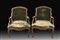 Coppia di poltrone con schienale e braccioli sagomati e intagliati a foglie e...