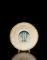 Piattello in maiolica con larga tesa bianca profilata da tre linee...