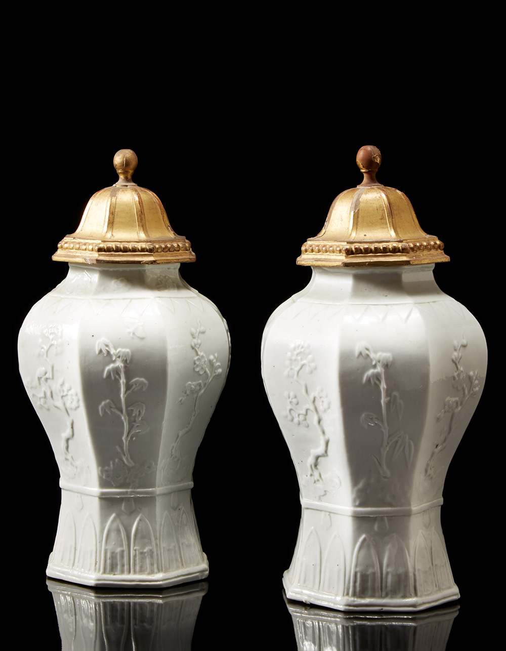 Due importanti vasi 'potiche' in porcellana bianca di Doccia, 1740-1745....