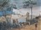 (Attr.) "Paesaggio fluviale con figure di pescatori e viandanti" tempera su cartoncino (cm 45x61,5) In cornice (difetti) reca firma indecifrata in basso a sinistra (Attr.to) "River Landscape with Figures" tempera on cardboard (cm 45x61,5) Framed (defects) undeciphered signature