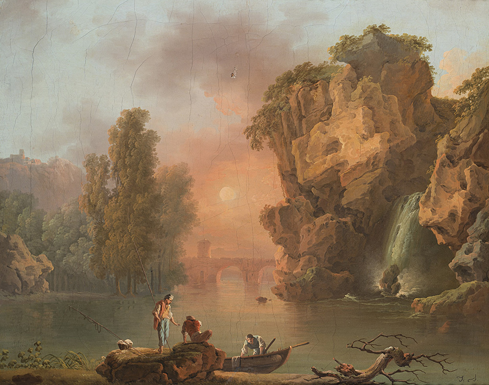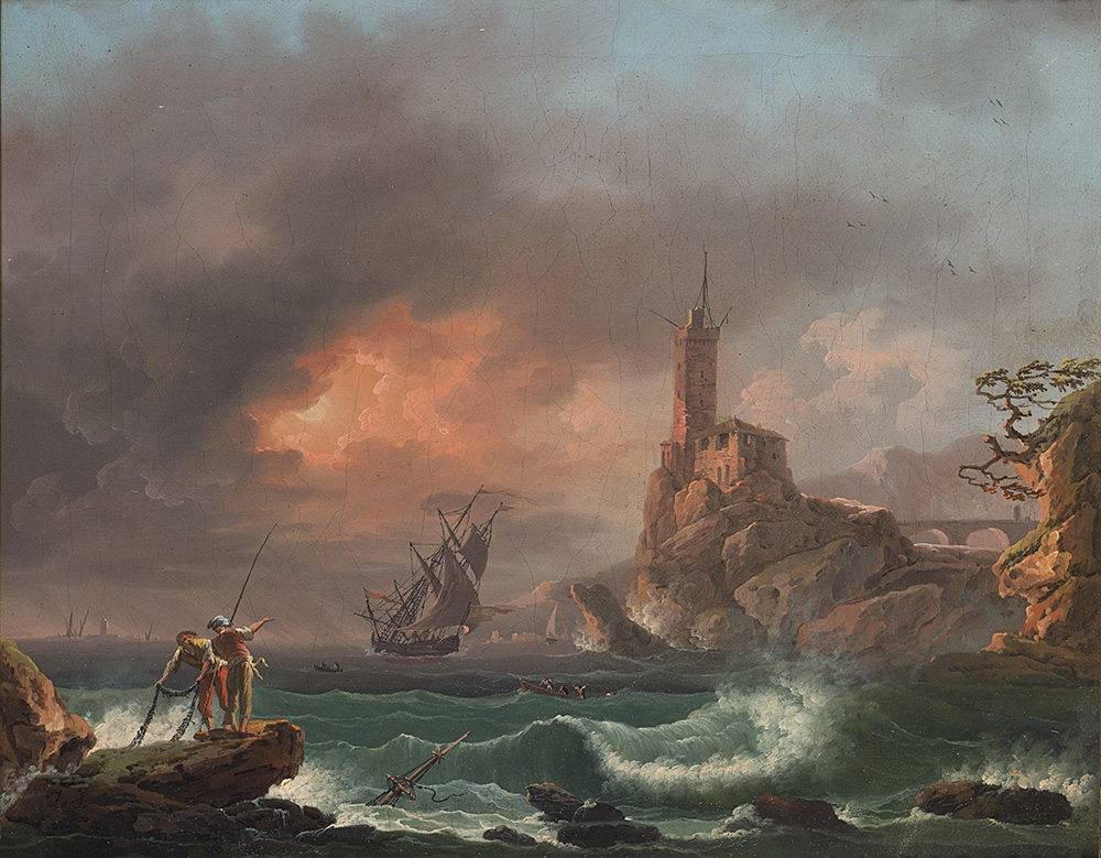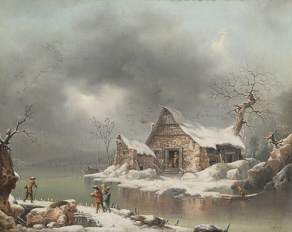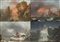 "Le quattro stagioni" gruppo di quattro oli su tela (cm 36,5x45)In cornice (difetti) uno riporta etichetta al retro, siglati F. F. "The Four Seasons" group of four oils on canvas (cm 36,5x45) Framed (defects). Initialled F. F. Francesco, il primogenito, dalla scuola paterna passÚ a quella di La Croix, uno dei pi˘ rinomati allievi di Vernet. Valente pittore, a Parigi prevalentemente, fu interprete di quello stile paesaggistico emotivo molto in voga allíepoca Il suo lavoro si combina con un vivo senso di armonia pittorica, le sue atmosfere irrequiete, ricche di suggestioni cromatiche, rappresentano un importante momento di passaggio tra il vedutismo decorativo del ë700 e il paesaggio della stagione romantica che si apre al realismo e al colore. Fidanza coglie, in questi quattro dipinti, effetti metereologici, squarci temporaleschi, mareggiate, nevicate e tramonti in un tripudio di nuvole, tingendo la tela della gamma dei rossi o mescolando i blu delle acque con il bianco della spuma, oppure creando líatmosfera ovattata ed offuscata della neve. I suoi personaggi, descritti da sicure e brevi pennellate sono integrati in una natura oggettiva carica di luce e colori, impaginati in una personale e delicata sensibilit‡ atmosferica, osservata e resa in particolari situazioni luministiche legate, oltre alle stagioni, alle ore del giorno o ad improvvisi mutamenti temporali. Bibliografia: AA. VV., Il Settecento a Roma, Roma, De Luca Editore, 1959.