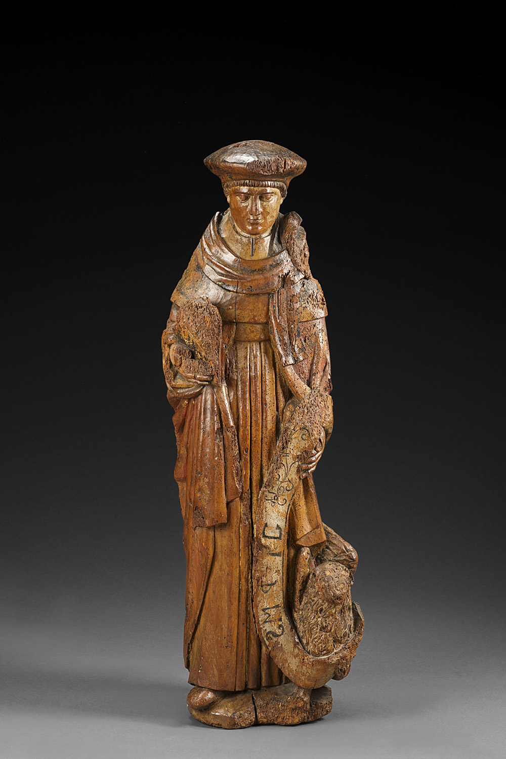 Artista del sec. XVII "San Marco" scultura lignea con tracce di policromia...