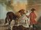 Maestro del secolo XVIII "Cavaliere, cavallo e stalliere" verre-peint (cm 19,5x26) In cornice 18th-century master " Knight, horse and groom" verre-peint (cm19,5x26) Framed