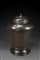 Antico contenitore biansato in rame con coperchio sbalzato a gocce stilizzate...