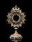 Ostensorio in metallo e argento parzialmente dorati. Piede gradinato e...