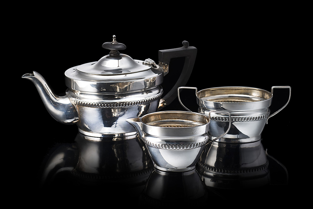 Servizio da thË in argento composto da teiera, lattiera e zuccheriera a corpo...