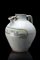 Grande orciolo in maiolica bianca compendiaria con cartiglio in giallo e...
