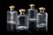 Servizio composto da quattro bottiglie portaprofumo in vetro sfaccettato e...