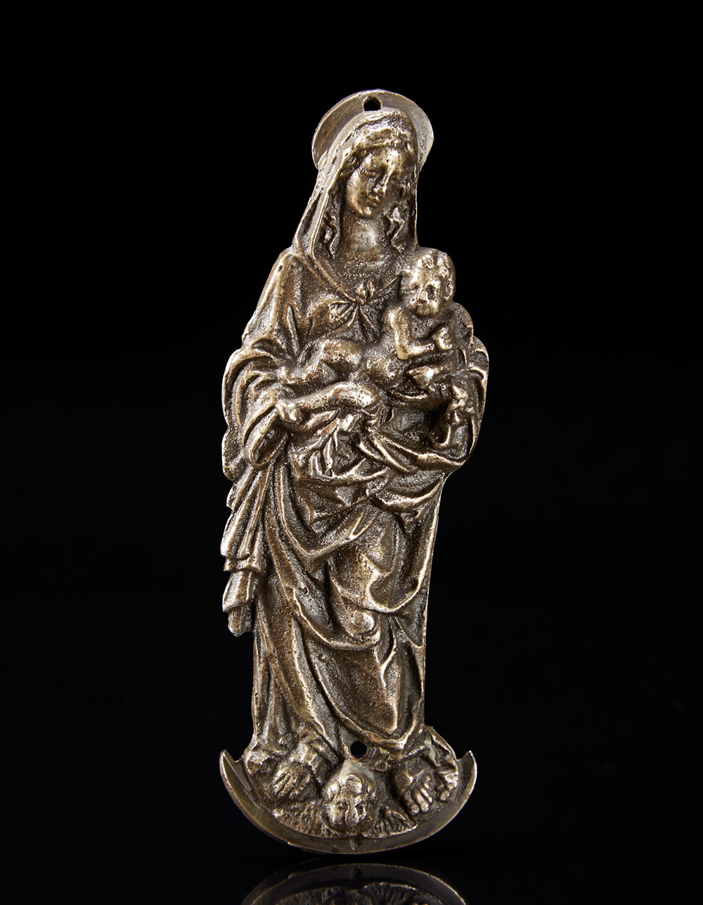 Lotto 669 | Ignoto "Madonna con Bambino" placca in bronzo argentato (h. cm 11,1)...