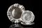 Gruppo composto da sei piccoli sottopiatti e uno grande in argento di forma...