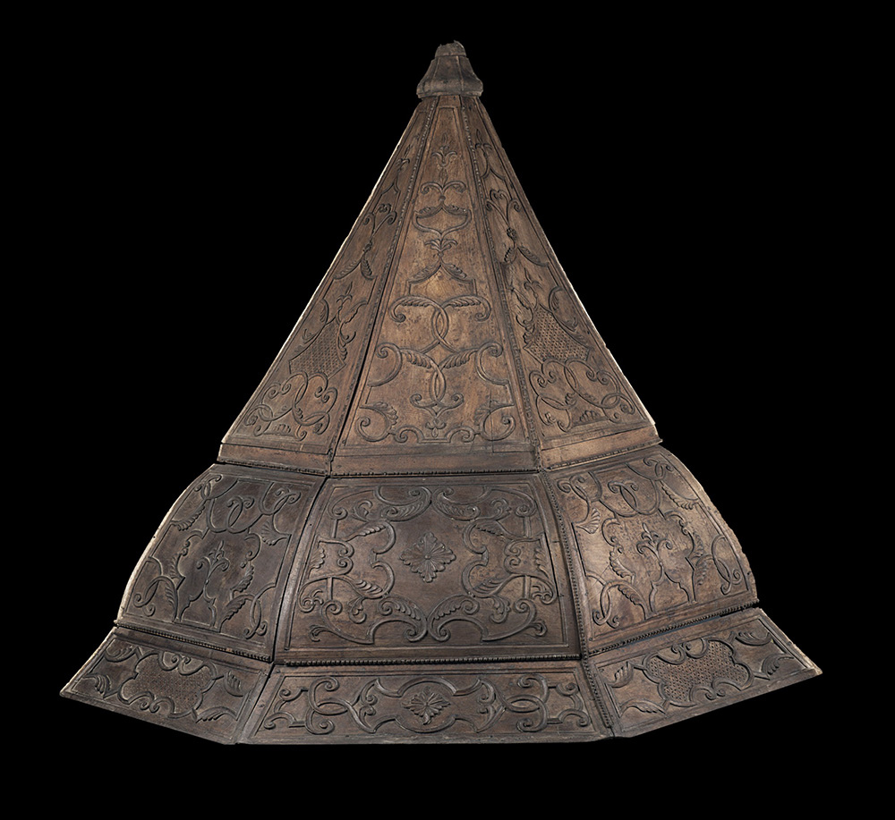Arte del sec. XVIII. Grande mensola da parete in noce di forma conica a tre...