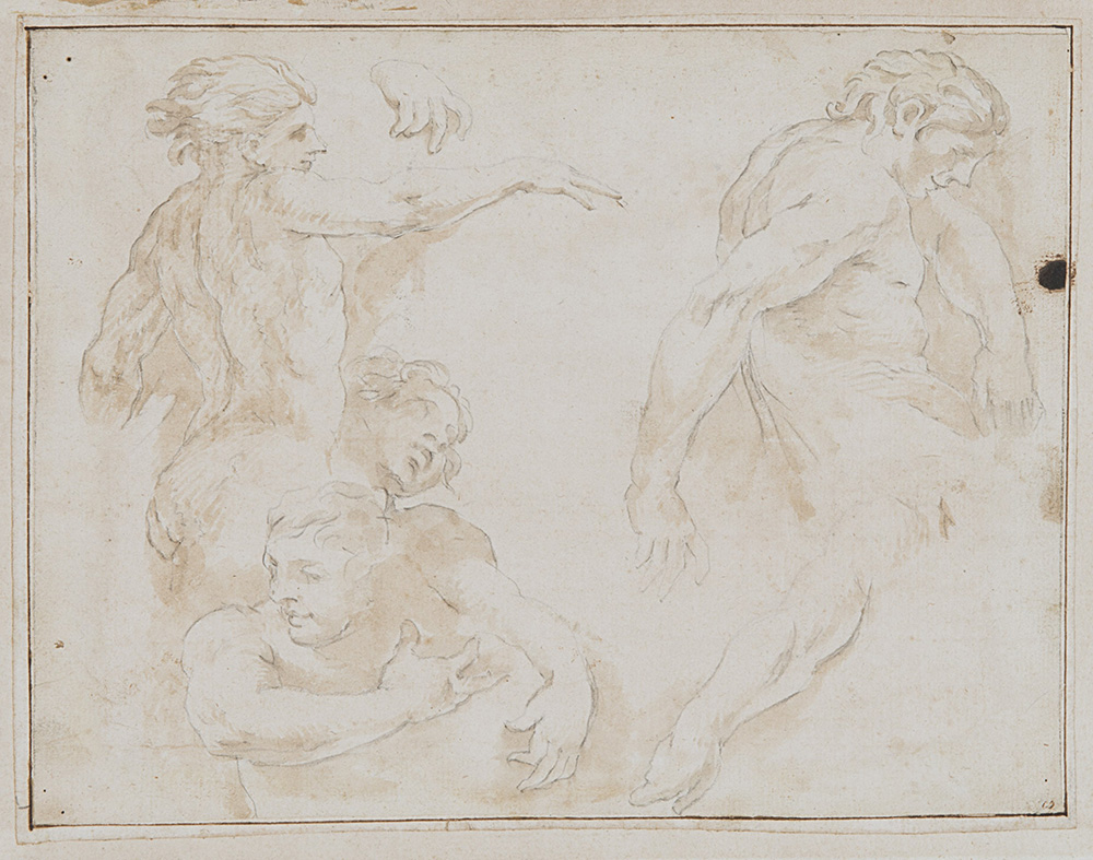 Scuola del sec. XVIII "Studi per volti e figure" coppia di bozzetti a matita...