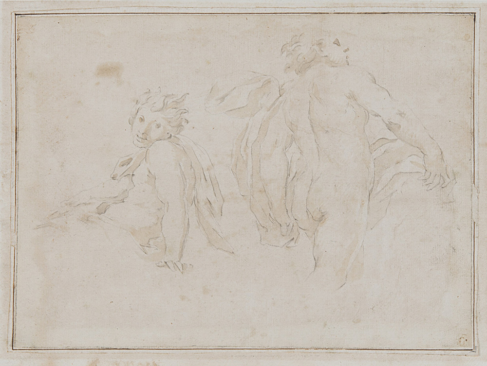 Scuola del sec. XVIII "Studi per volti e figure" coppia di bozzetti a matita ed acquarello (cm 20x26) (difetti) 18th-century school "Sketches for faces and figures" , a pair of pencil and watercolour drawings on paper (defects)