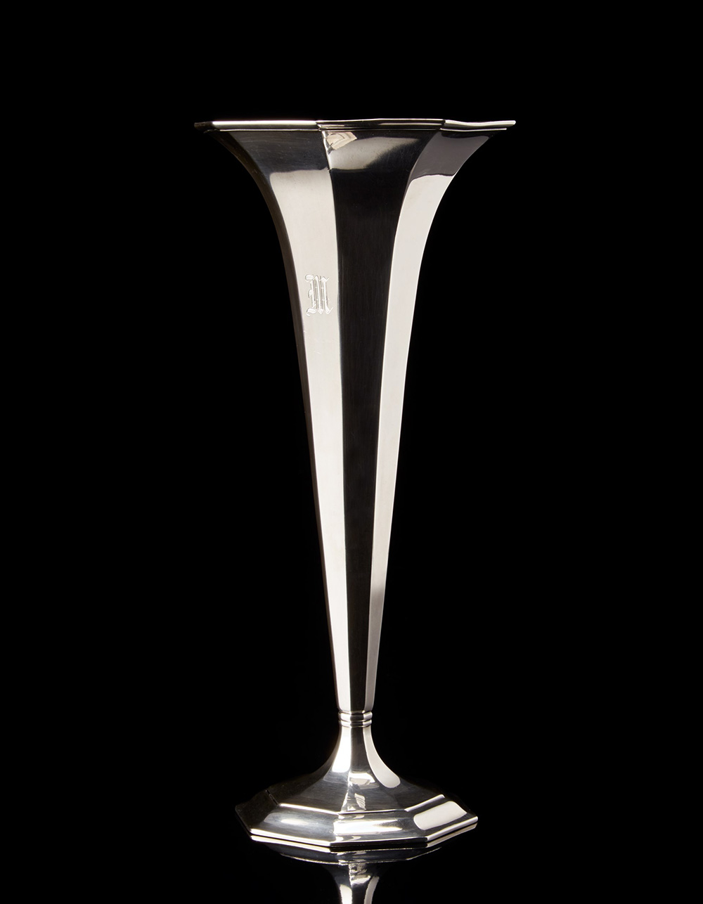 Vaso in argento liscio a sezione ottagonale di forma svasata. Tiffany & Co....