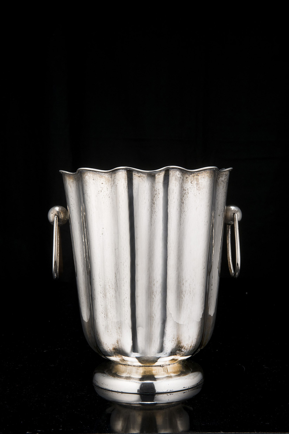 Rinfrescabottiglie in argento a due anse. Argentiere Angeletti Roma (h. cm...