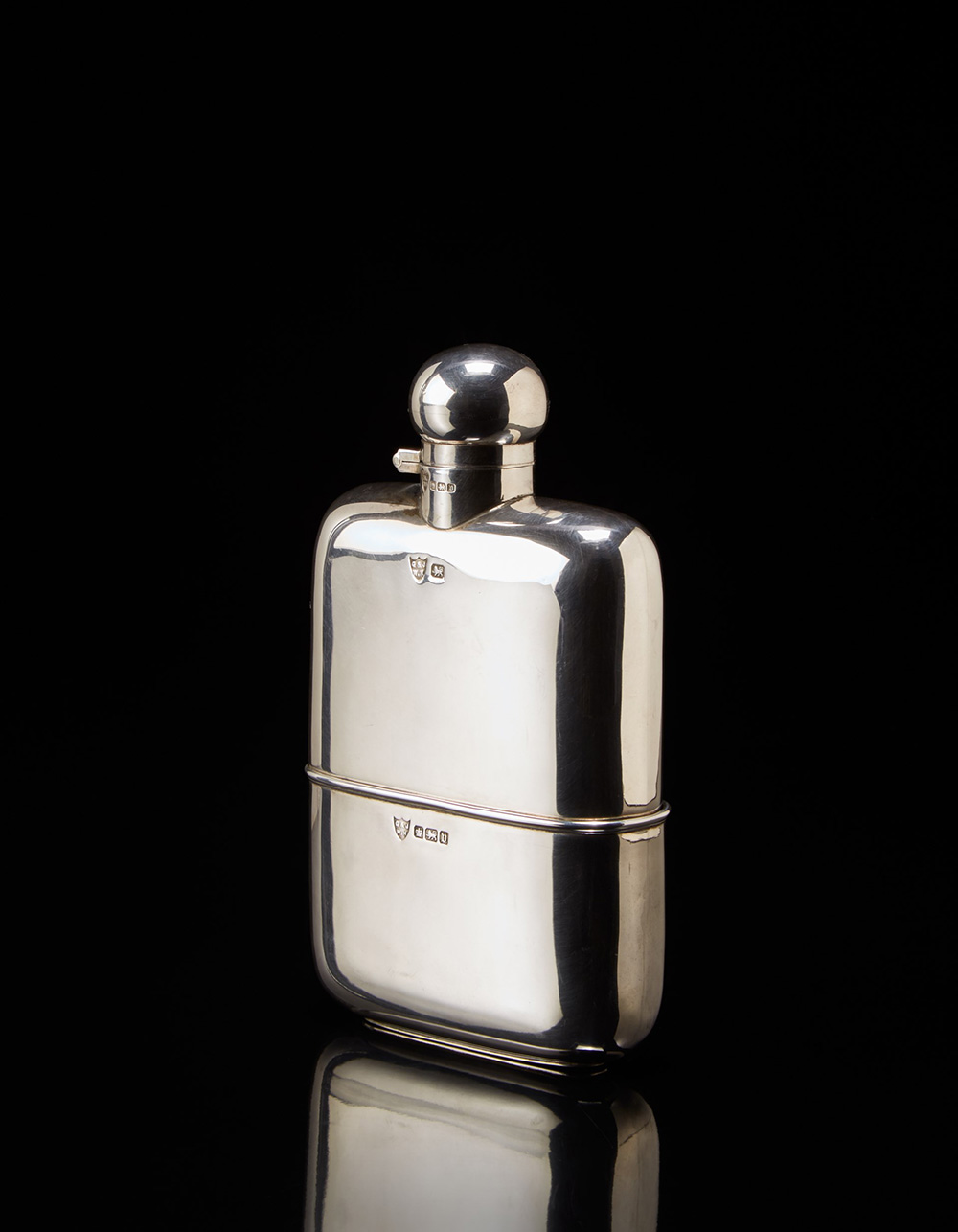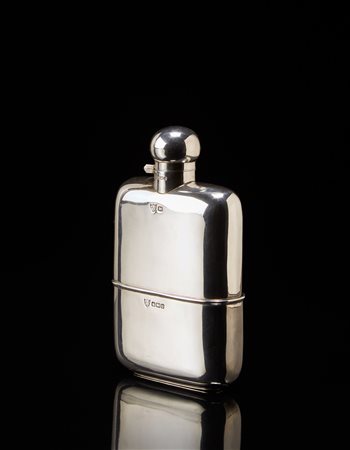 Fiasca in argento con bicchiere. Citt‡ di Sheffield, 1913 (h. cm 16,5) (gr 330 ca.) Silver flask with cup. Sheffield, 1913