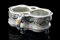 Porta olio e aceto sagomato e costolato in maiolica policroma con bordi a...