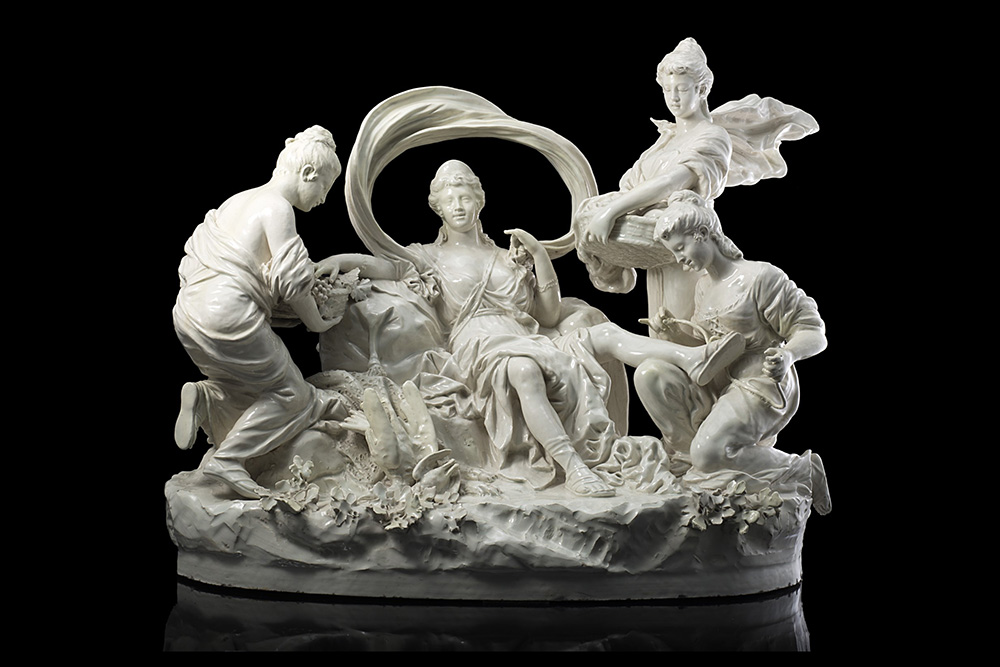 Grande gruppo in terraglia bianca con soggetto mitologico di divinit‡ (Diana...