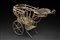Carrello bar a forma di culla in ottone decorato a volute e fregi con piani in vetro. Sec. XIX (cm 104x73x50) (difetti e mancanze) 19th-century cradle-shaped brass trolley (defects and losses)