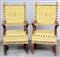 Coppia di poltrone in noce con braccioli e gambe dritte. Schienale decorato...