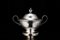 Zuccheriera biansata in argento a due manici con coperchio di forma circolare...