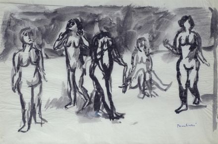 Orfeo Tamburi (Jesi, 1910 - Parigi, 1994) NUDI China su carta, cm. 20x30 Firma in basso a destra. Autentica dell’autore su foto.