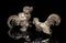 Coppia di sculture in argento a forma di galli in combattimento. Germania,...