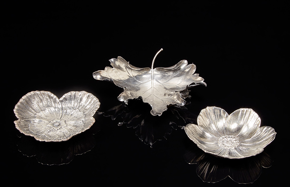 Gianmaria Buccellati. Gruppo di sei vaschette in argento a forma di foglia di...