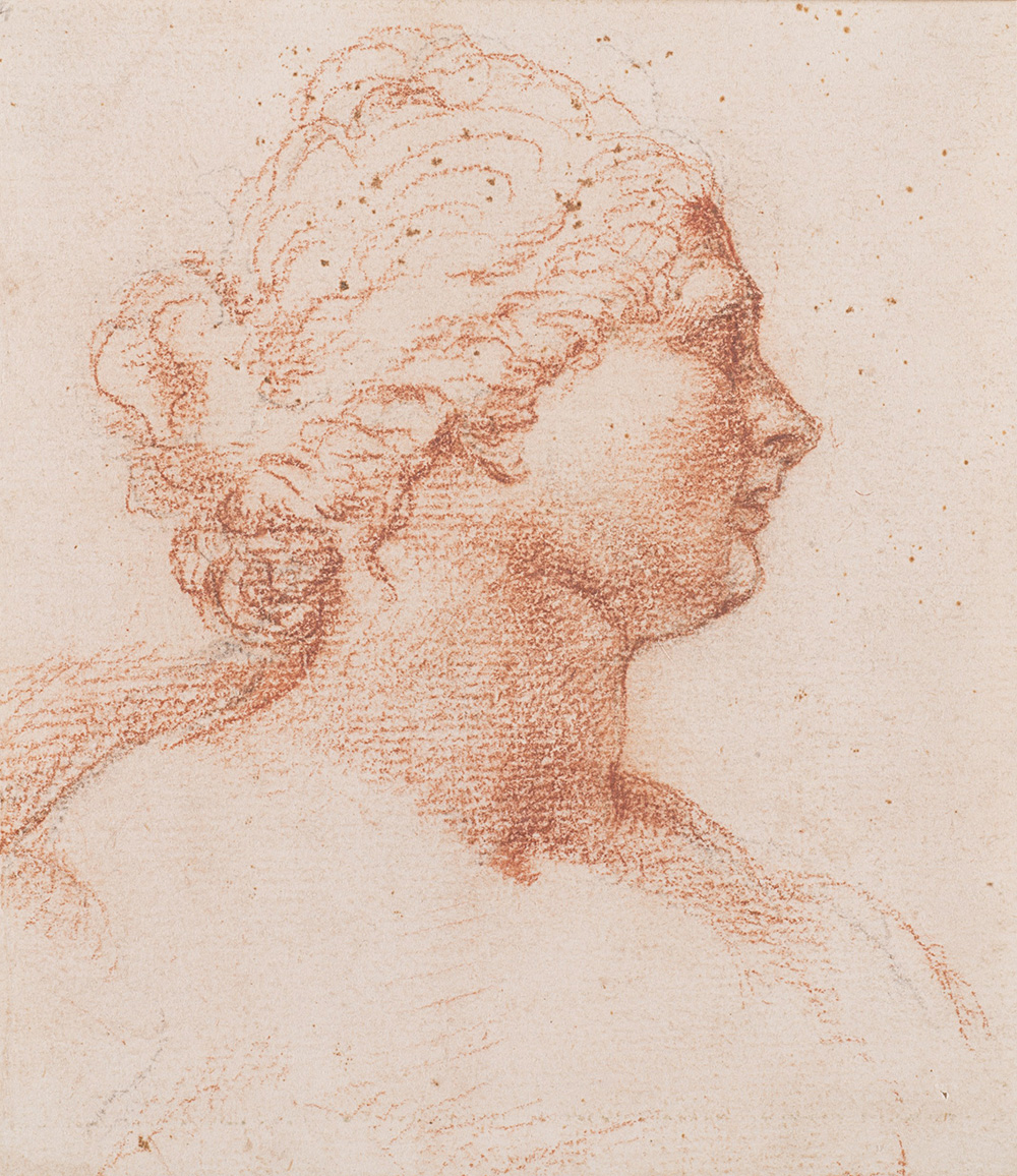 Maestro francese del XVIII Secolo "Studio per volto" disegno a sanguigna (cm 14.5x12.5) In cornice Al retro: iscritto Boucher 18th-century French master, sanguine drawing. Framed