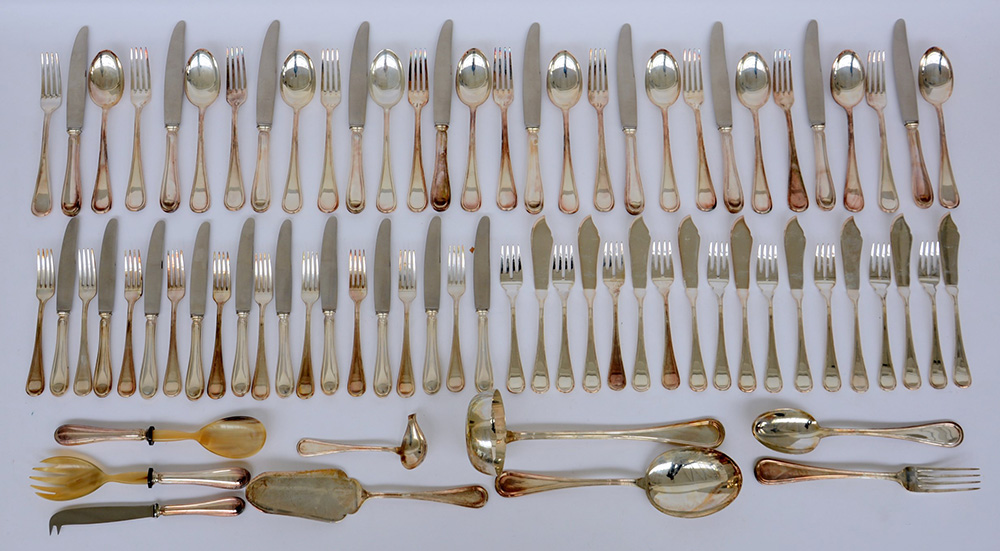 Servizio di posate in argento composto da dodici forchette, dodici coltelli e...
