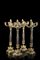 Guarnitura da camino composto da quattro candelieri a sei fiamme in bronzo...