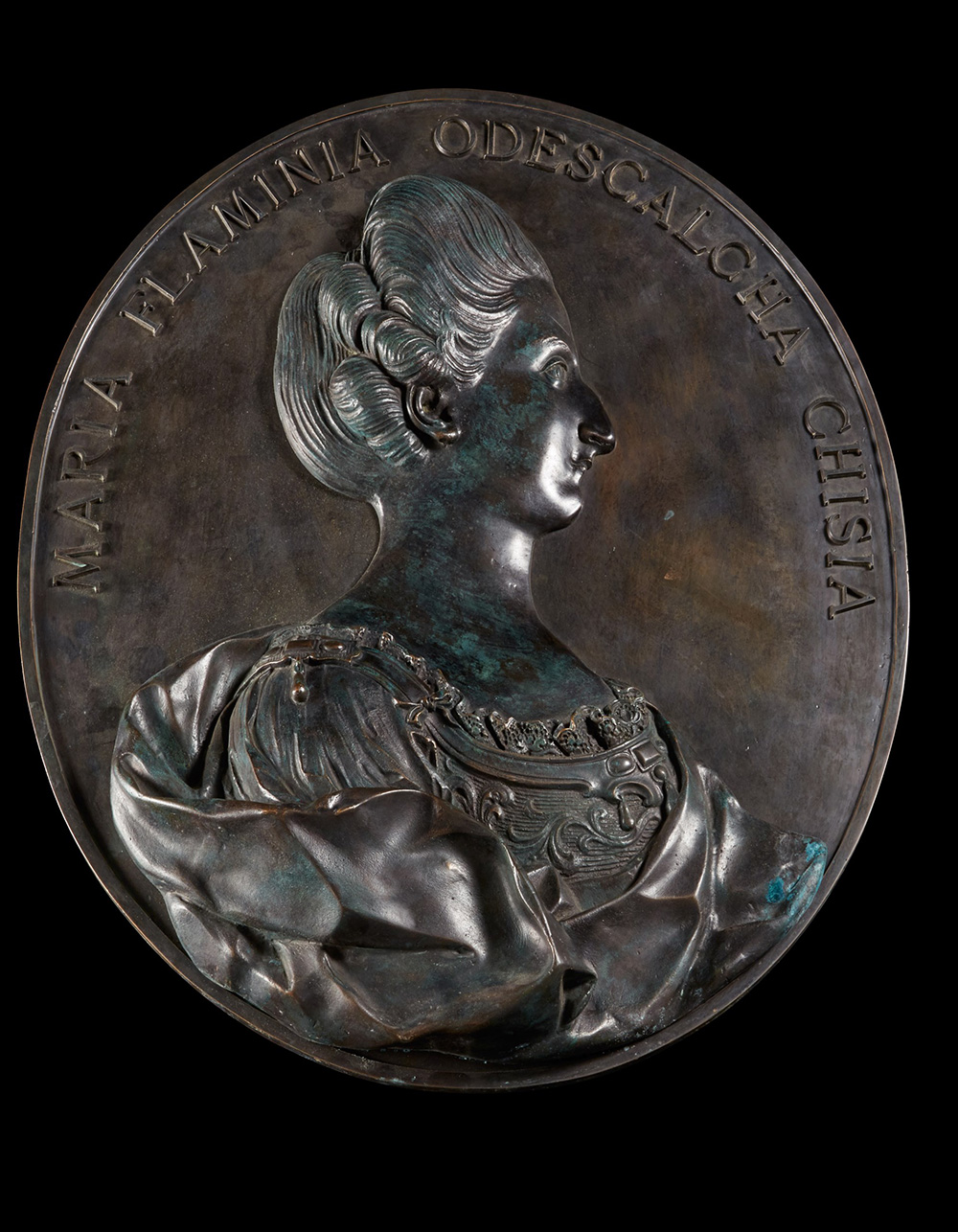 Scultore della seconda met‡ del sec. XIX da Agostino Penna "Ritratto di Maria Flaminia Odescalchi Penna". Altorilievo ovale in bronzo (cm 70x62) (difetti) Sculptor of the second half of the 19th century, after Agostino Penna "Portrait of Maria Flaminia Odescalchi Penna" bronze high relief (defects)