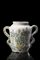 Vaso in maiolica a corpo cilindrico con due anse a doppio occhiello....