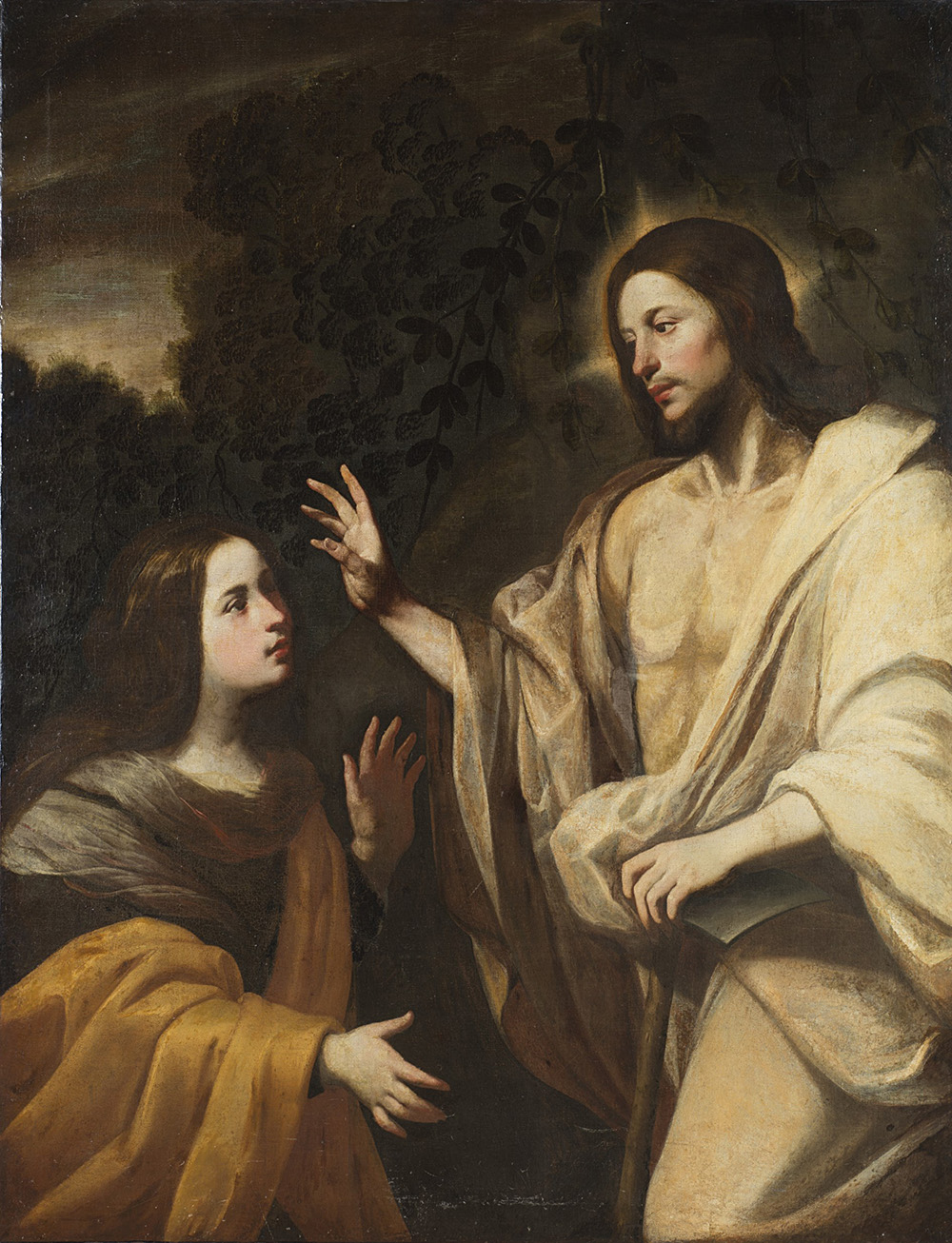 Scuola toscana del sec. XVII "Noli me tangere" olio su tela (cm 147x113) (difetti e restauri) Tuscan school of the 17th century "Noli me tangere" oil on canvas (cm 147x113) (defects and restaurations)