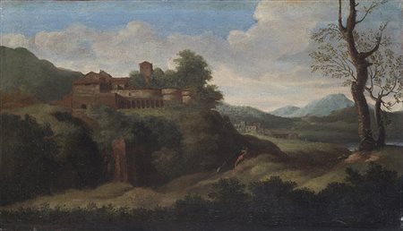 Scuola del secolo XVIII "Paesaggio" olio su tela (cm 28,5x48,5)In cornice...