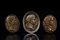 Arte del sec. XVII. Gruppo di tre placche ovali decorate con profili di Cesari. Misure diverse (difetti) 17th-century art. Group of three plaques with profiles of the Caesars (defects)