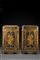 Coppia di stipi lastronati in legni vari con fronte e fasce intarsiati in...