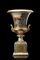 Vaso "Medici" in porcellana dorata con due manici terminanti a mascheroni. Sul davanti Ë dipinta una grande miniatura raffigurante pastori con gregge (h. cm 39) Sec. XIX (rotture, estese usure allíoro) 19th-century porcelain "Medici" vase (breakage and wear to gilding)