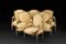 Gruppo di sei poltrone in legno dorato interamente intagliate a motivi...