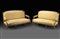 Coppia di divani in legno dorato interamente intagliati a motivi vegetali e...