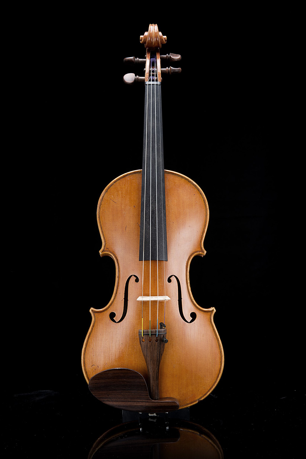 Violino di FrÈdÈric Becker, Cremona 1976 Fondo in un sol pezzo con marezzatura vellutata e orizzontale, vernice di colore arancio bruno, restauri nelle fasce e nella tavola, etichetta ´Frederic Becker / Fatto in Cremona Anno 1976ª (lunghezza de fondo mm 355). Con custodia FrÈdÈric Becker, Violin, Cremona 1976, with case (restorations)